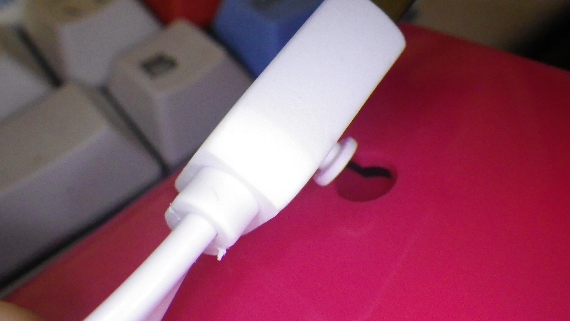 USBコネクタ部分に、金属のシールドが施されていない物は、 謝った感じで刺さり、