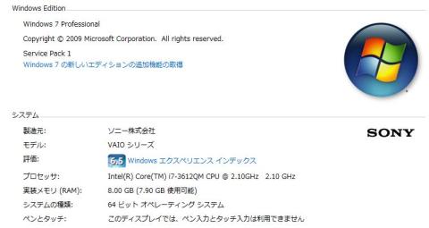 そしてCPUはCore i7 3612QM 2.1GHz 4コア 8スレッド!!