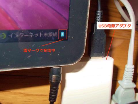 ④ 実際にUSBから充電してみてタブレット画面下のバッテリ-