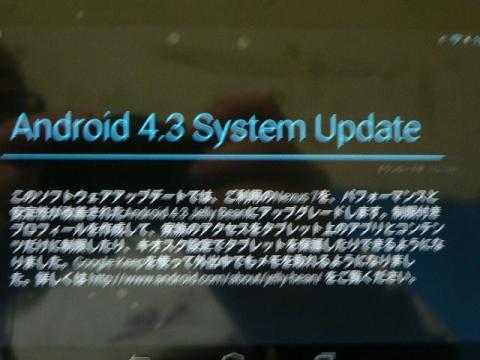 まずは、Android4.2から4.3へアップデートなようで。