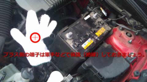 プラス側を作業中に工具が車輌の金属部分に接触すると