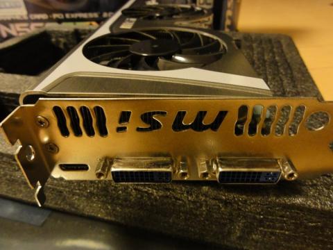 出力は、DVIが2つとminiHDMIが一つ。なにげに“msi”とくりぬかれたロゴが可愛い。
