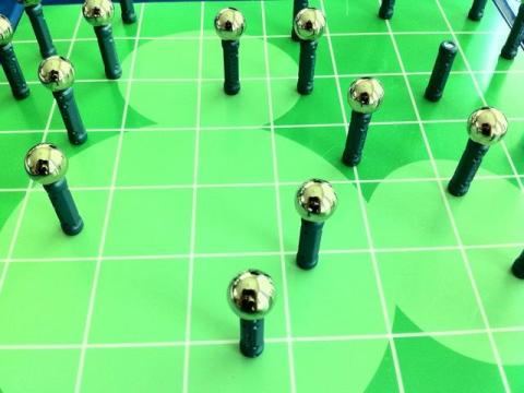 「どんなものか?」というと、マグネットの棒とパチンコ玉より一回り大きい鉄球がセットになったパズルです。