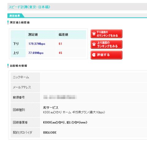 一般のスピードテストは、 上り180 Mbps 下り 77 Mbps 程度です。