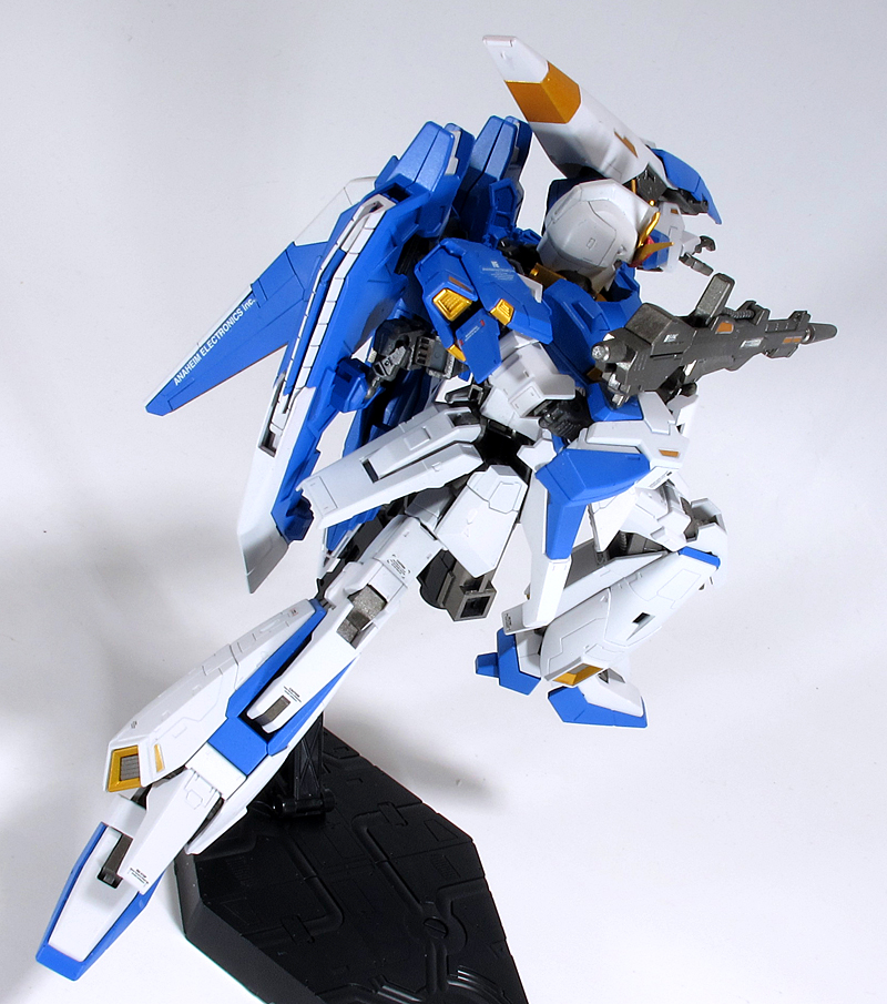 アムロのパーソナルマークは、肩をまっすぐにしたときに正しい向きになるように貼っていますので、ポージングしたときに傾いています。