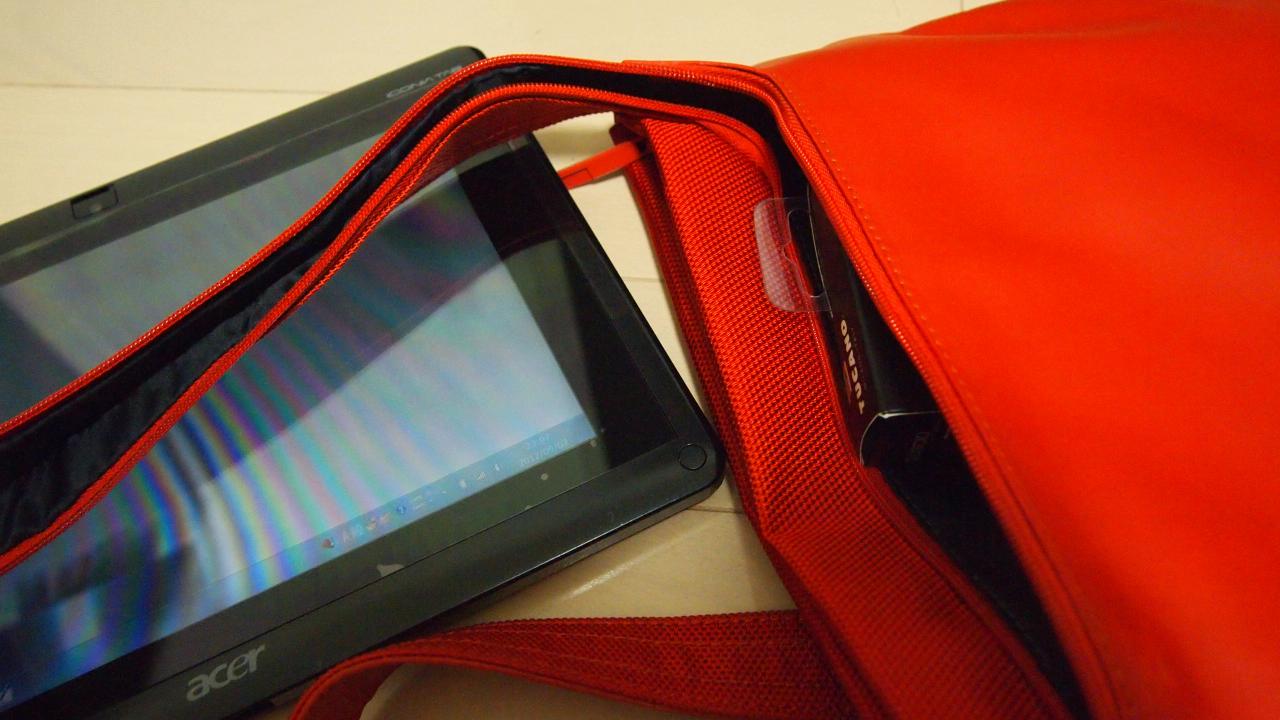 FINA miiniは7インチTABが限界でしたが、こっちは10インチのICCONIA W500がギリ入ります。