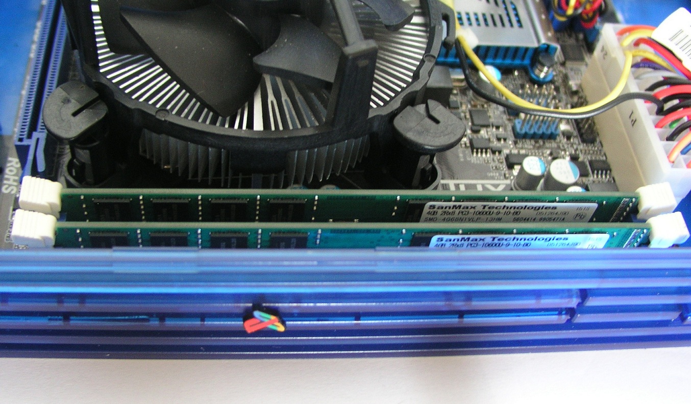 Slot2のほうは、ギリギリ幅広になる場所なので収まりますが、i5-3570KはDualChannel動作なので、メモリを2本搭載しないと速度が遅くなります。