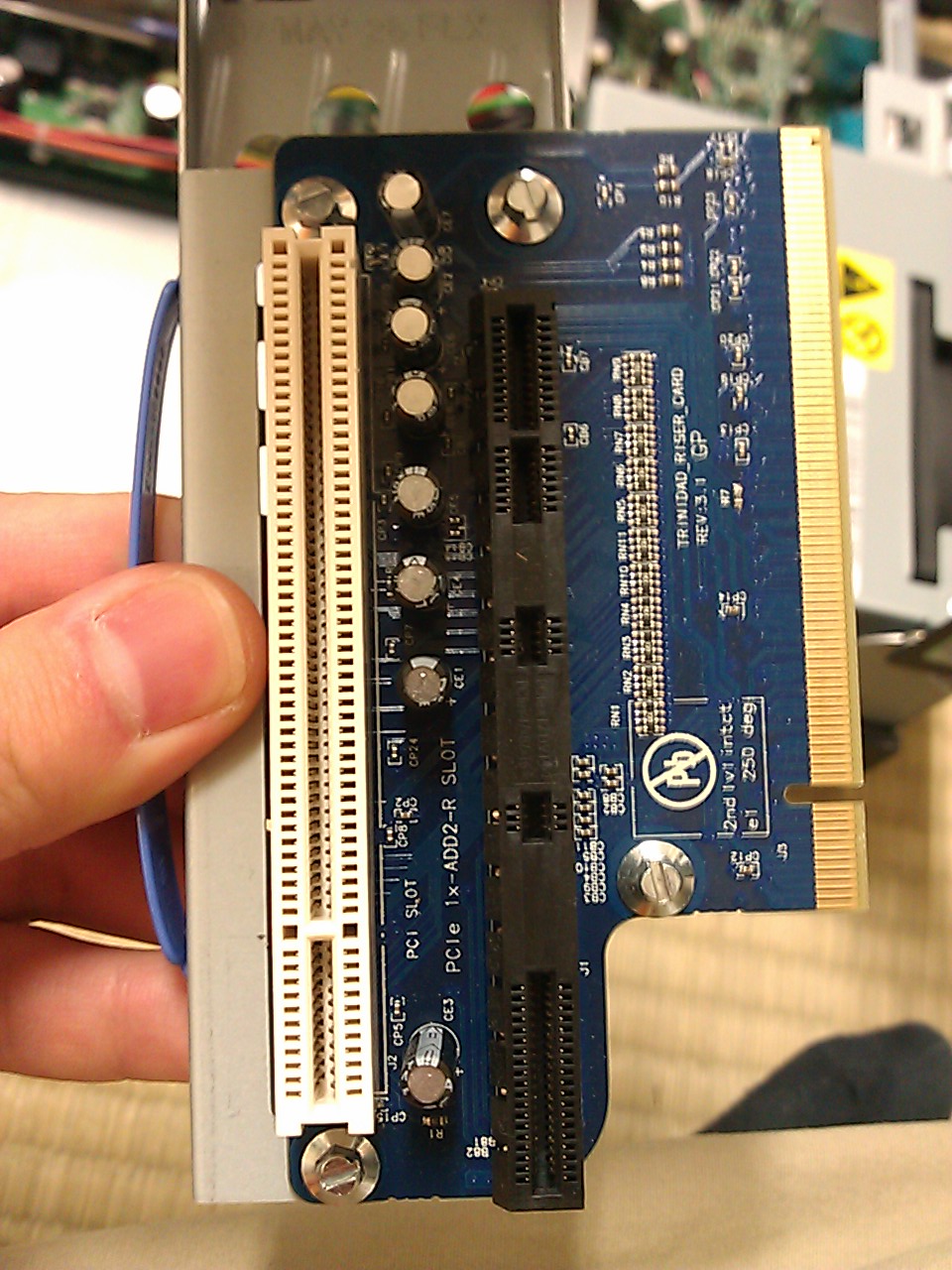 マザーボードから、PCI 1本と PCIe x1 または専用ADD2カードを挿せるもののようです。
