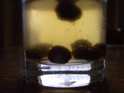 泡が落ち着いてくると白濁した水の中に豆腐の破片が漂っていました。う~ん、絹ではだめか、木綿か焼き豆腐か・・・(←懲りない奴)