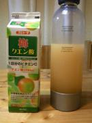 濃縮還元100%リンゴジュース(\98)です。水以外の液体はボトルに720ml入れてカーボネイトするように書かれていますので、720mlで作ってみました。