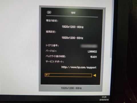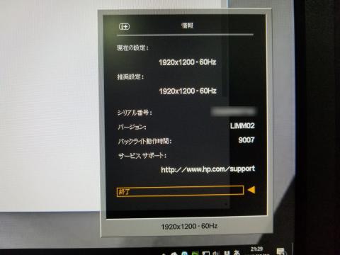UWXGA(1920x1200)、IPS液晶、LEDバックライト、チルト可能、HDMI、DisplayPort、DVIの3系統入力、ということで悪くないと思っています。