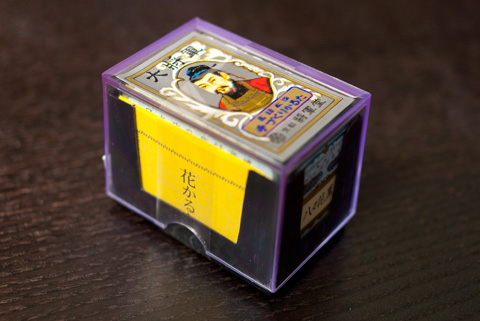 かるたは、丁寧に包装紙に包まれており、封がされています。