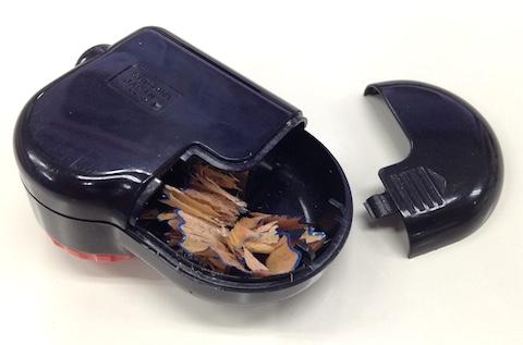 削りカスは内部に収納できるようになっていますが、小型なので少量しか入りません。この事からやはり限られた環境下で使用する(例えば試験や授業中など)のに向いていると思います。