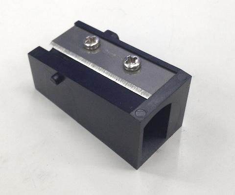 普通より少し長めの「刃」、刃の鉛筆挿入口が円ではなく長方形になっています。