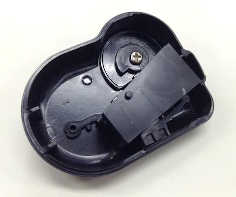 スプリングとフタパーツをセットした状態、半月状のカムでフタパーツを動かします。