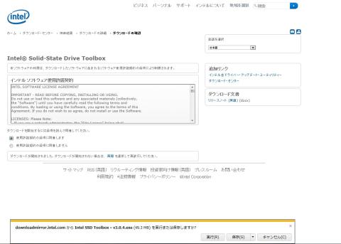 3.INTELのダウンロードセンターから、Intel® Solid-State Drive Toolbox ダウンロードし、対象SSDの