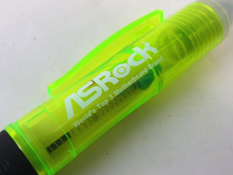 ASRockマザーは5枚ほどあるのに、ノベルティはパンフレット類を除くとマウスパッドとこのボールペンくらいしか持っていなかったりする。もっと持っている気がしたがまったくもって気のせいだった。さらに入手経路・タイミングも忘れている…たぶん販促イベントか何かだと思ったのだが。