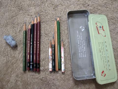 HBの一番短い鉛筆にまだ名残がありますねー。消しゴムはこちら