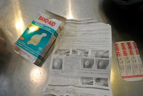 ロゴマークが印刷されていない方を傷口に貼ります。