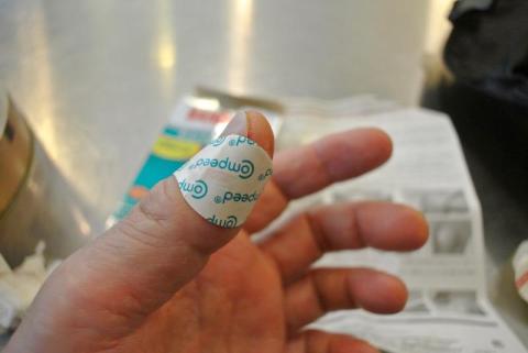 次に、止血を行うと思いますが、その時にキズパワーパッドを体温で温めておく必要があります。