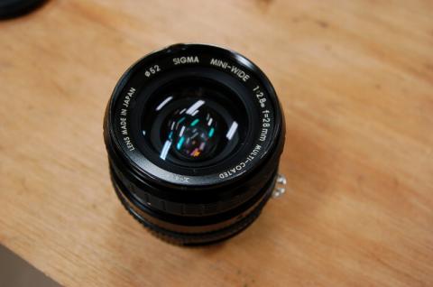 MFなSIGMAの単焦点レンズを買ってみました。28mmのF2.8で、最短撮影距離は0.22mです。今まで持っていたズームレンズはどちらもプラスチック製だったので、この古い金属製のレンズは新鮮です。