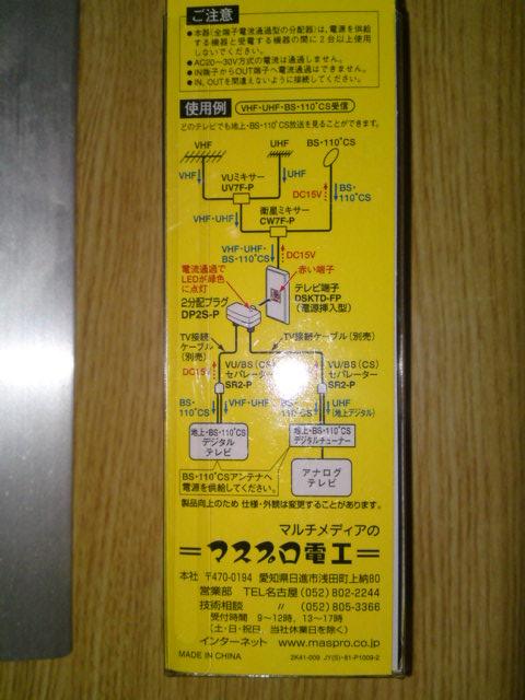 この分配プラグは、どちらの端子も通電可能ですので、BS/CSの分配も可能です。