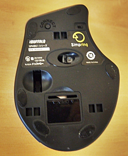 マウスの背面にはスイッチの類とUSBを格納する穴があります。