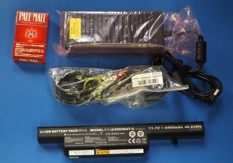 こうしてアダプターとバッテリーを並べると、バッテリーがジョークにしか思えないですね。このバッテリーでノートPCを動かす気になった設計担当出てこい。とかいいたくなる気分。