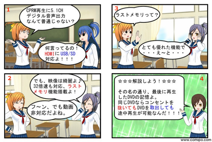 ・対応フォーマット: MPEG1/MPEG2/AVI※1/CPRM/JPEG/MP3/WMA