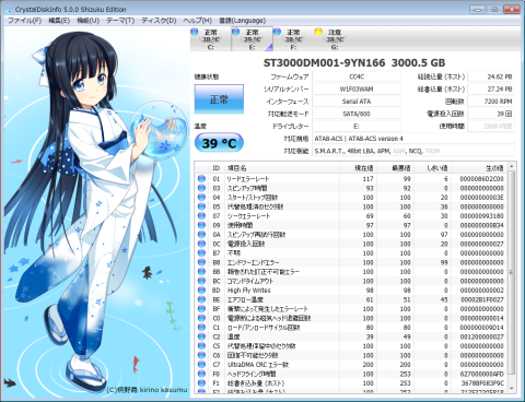 まずは、CrystalDiskInfoで状態を確認。