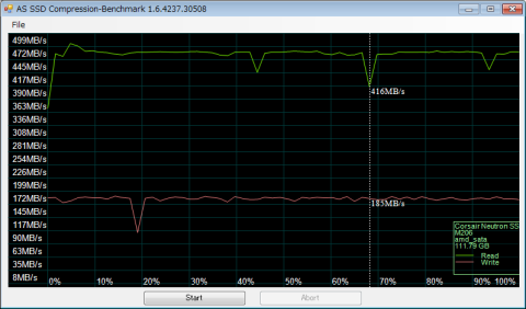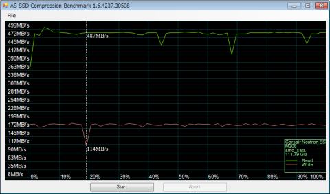 最後にAS SSD Compression-Benchmark。時折落ち込んでいますが、概ね安定しています。