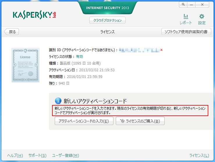 今年3月の登録なので、まだ半年も経っていないのだが、ライセンスの有効期間はアクティベートから3年なので、2年半後の更新用に購入しておいた。