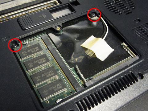 まずはプラスドライバーでメモリ(1枚目)のフタを外す。