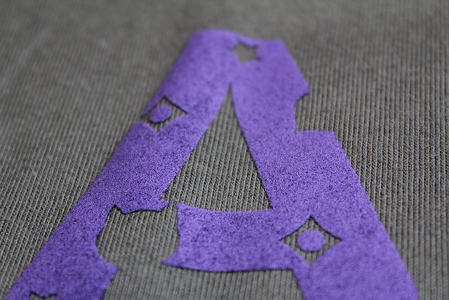 そして、このフロッキーをデザインしたモノグラムの形状に合わせて切り抜いて貼り付けるのですが、!この作業が、非常に神経を使うので大変なんです。(私は見るだけですが・・・w)