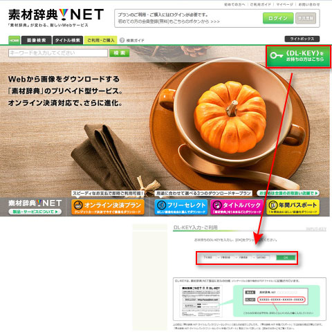 素材辞典.NET タイトルパックで写真素材を入手するには、