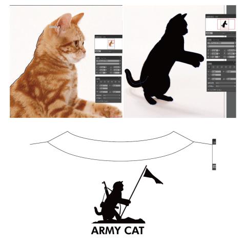 初期の猫ロゴは、切り抜きづらいということで、旗の長さとトランシーバーの形状を若干修正しましたが、全体バランスとしては全く弄らない形で収まりました。