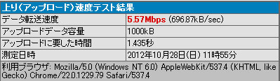 5.57Mbpsです。REGZA接続時よりも早いですね。