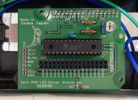 16chのPWMコントロール用IC「TLC5940NT」のArduino用シールドキット。