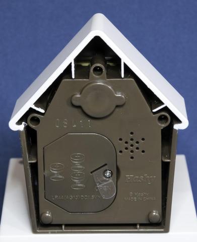 青色のストップボタンを押さなければ約 1分間鳴きつづけます。