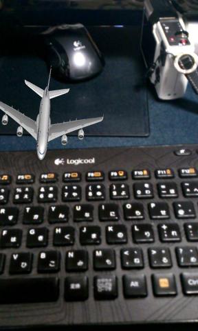 スマホに ARアプリを入れて、コードをスキャンすると「エアバス A380」が現れるらしい。