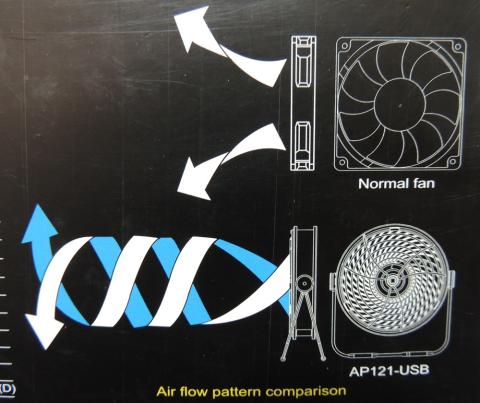 一般的なファンと比較して、このグリルによって整流された風は直進性が高くなる。