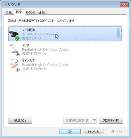 先ほど接続したUSBデバイスが録音側になっているか確認。