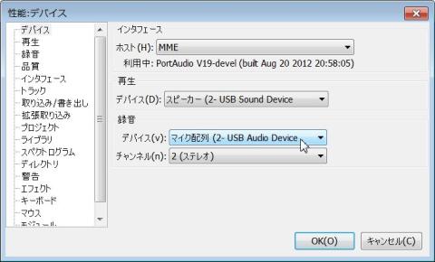 後は録音用のフリーのソフトウェア「Audacity」です。日本語にも対応。