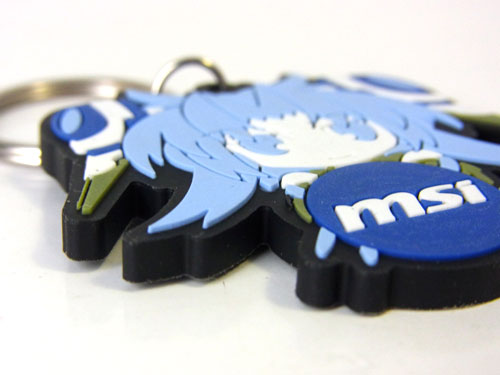 「公式キャラなのに影が薄い」だの「バリエーションが増えるにつれて絵のタッチが変わる柔軟性」と開き直りな設定がされている上に、公式サイトの素材ダウンロードコーナーはリンク指定ミスでクリックできない&URLを辿っても404という素晴らしい扱いを受けているMSIの公式キャラクター「美星藍」のキーホルダー。