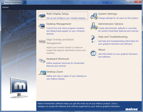 デジタルサイネージやプロジェクターの利用も考慮され、例えばモニタ部分のベゼルを無視した画面表示や、複数プロジェクタによるつなぎ目の無い表示。いくつものモニタを1つとしてOS上から認識させ、マルチディスプレイ環境下で挙動がおかしくなるソフトもこれで安心で、かゆいところに手が届く細かい機能の数々。