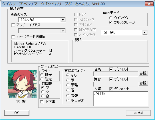GeForce220は47人もはべらせてるのに!ひどい格差社会だ。俺の人生全年齢版!とはいえこのソフト、モノ自体は比較的軽量でエディットモード程度ならノートパソコンでも遊べる程度。なのにParheliaの頃はピクセルシェーダー2.0非対応という門前払いだったので、M9138なら製品版を起動して着せ替えゲームができるぞ!!