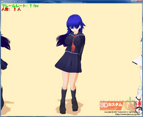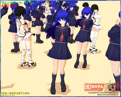 キャラクターが増えていってFPSが一定値以下(15?)になったら停止or50人の最大人数に到達した場合はその時のFPSを参考にする。