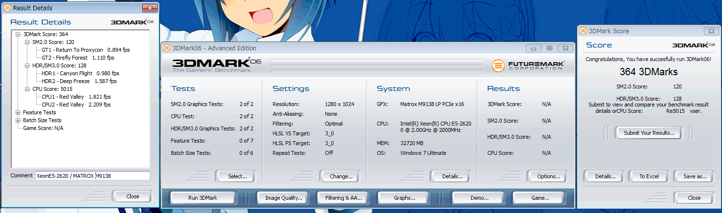 どうやら2D系ベンチだと「それなりに」高いスコアを出すらしいのですが、あえて開き直って3Dゲームやギャルゲー系をどっかんどっかんやってみました。