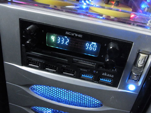 接続ケーブルも電源を含み4本ですむのでこの手のマルチパネルにしてはスッキリさせやすいし、スロット配置のムリも無い。先述のとおり奥行きがあるのでツールレスケースでも固定がしやすいし、電源ケーブル以外の長さは十分だ。実用的バランスに優れたベイアクセサリと言える。