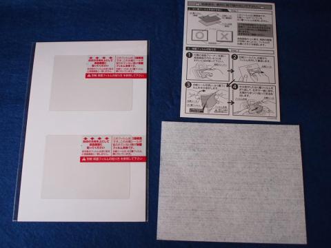 中には、液晶保護フィルム2枚と、クリーニングペーパー1枚、説明書が入っています。